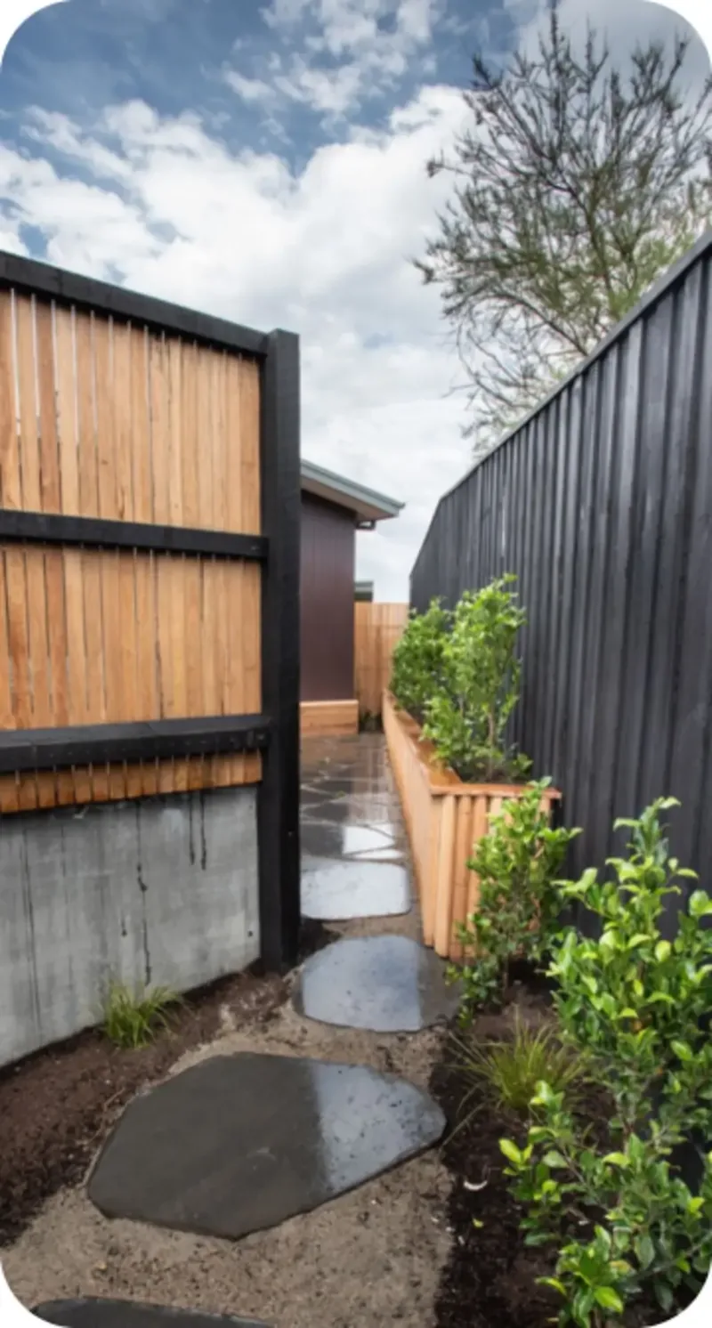 The pool was equipped with heating, so it has the appeal to be used all year round. The plain retaining walls were dressing with OB timber in a vertical style to add interest to what would have been plain timber sleepers. Our favourite screening plant, Ficus Hilli Flash, was used to screen the boundary fence.
