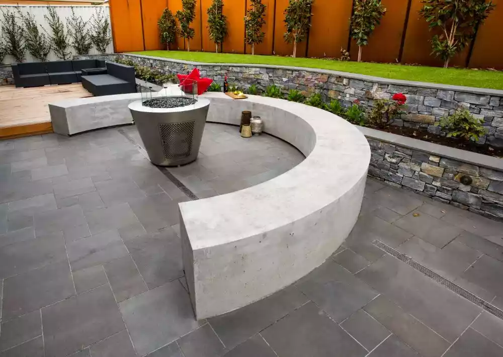 In the example below, this outdoor space for a property in Chadstone was built with an off-form firepit as the central feature of the backyard. It’s the perfect setting for entertaining and also suits the homeowner’s style.