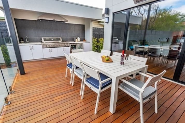 For those who love hosting outdoors, this trend is an excellent way to reduce time spent in a traditional kitchen and more time with guests. Our Mordialloc Project is an example of how we designed a garden with an undercover BBQ, an outdoor kitchen, and a pool.