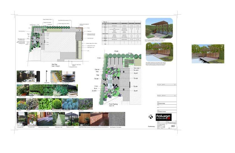 At our next meeting, at our office in Tyabb, we present the preliminary design, stating recommended material, colours and example layouts of hardscapes and softscapes.